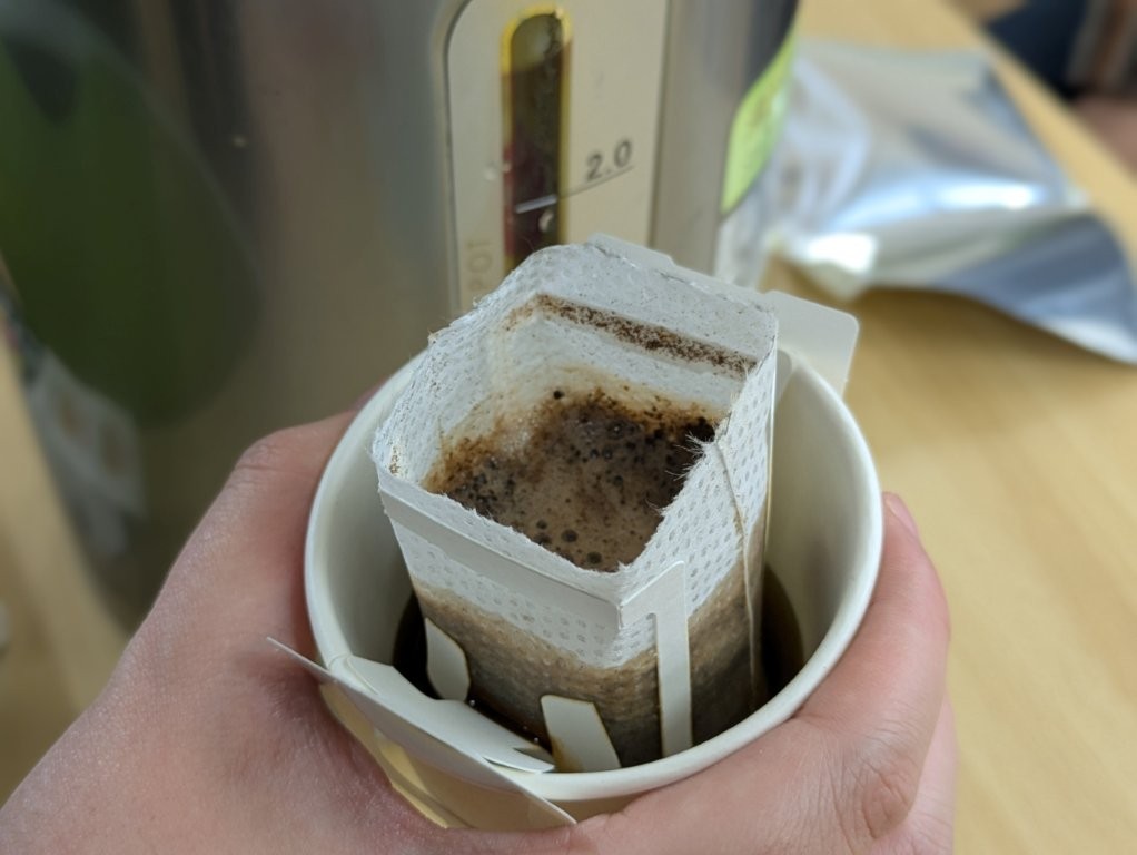 ドリップパックに、粉のスパイスを入れ、普段より長く蒸らします。